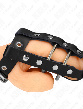 KINK - 4 CONNECTED METAL PENIS RINGS 3.8 CM TO 5 CM WITH LEATHER BELT 112 CM