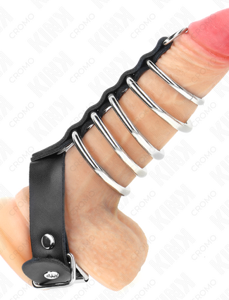 KINK - 7 METAL PENIS RINGS 3.2 CM TO 5 CM CONNECTED BY LEATHER