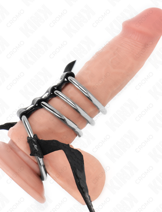 KINK - 4 METAL PENIS RINGS 3.7 CM TO 5 CM CONNECTED BY LEATHER