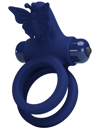 PRETTY LOVE - JAMELE DOUBLE RING WITH VIBRATION & BUTTERFLY STIMULATOR BLUE