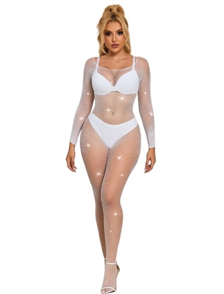 SUBBLIME - 952396 FISHNET BODYSTOCKING WITH DIAMONDS LONG SLEEVE WHITE ONE SIZE
