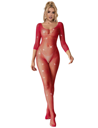 SUBBLIME - 952419 FISHNET BODYSTOCKING WITH DIAMONDS LONG SLEEVE RED XS/M