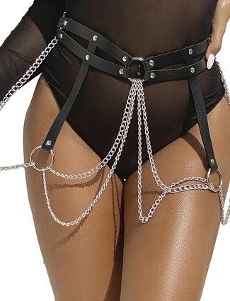 SUBBLIME - BELT AND GARTER HARNESS WITH RINGS AND CHAINDETAIL ONE SIZE