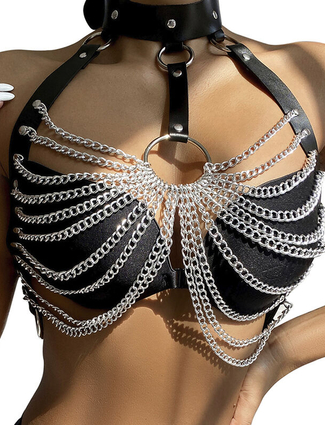 SUBBLIME - HARNESS BRA AND NECKLACE WITH CHAINS ONE SIZE