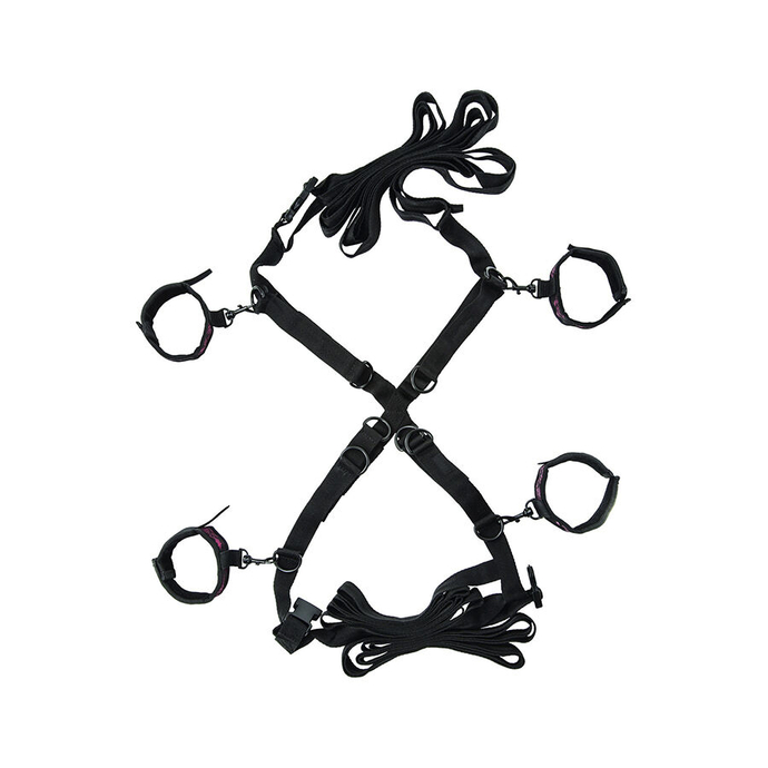 Turn your bed into a bondage playground with the Scandal® Over the Bed Cross. Fully adjustable to fit any bed size, this restraint system features durable straps, swivel clasps, and soft wrist and ankle cuffs that keep your partner securely spread and exposed. Whether you're teasing, caressing, or dominating, the cross design ensures unrestricted access to every curve and craving.