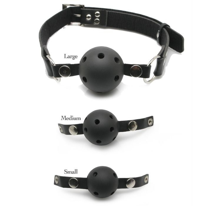 - 3 Interchangeable Breathable Ball Gags (S, M, L)