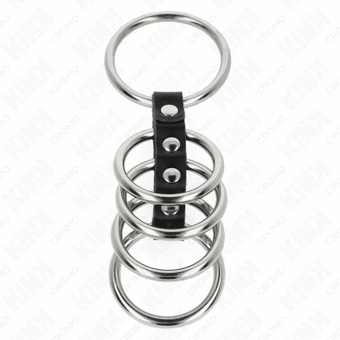 KINK - 5 PENIS RINGS 3.7 CM TO 5 CM METAL CONNECTED BY LEATHER
