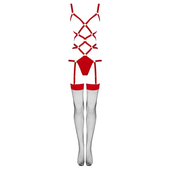 LIVCO CORSETTI FASHION - THIARA LC 20213 SET BODY + STOCKINGS RED S/M