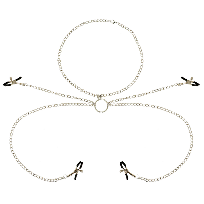 • Metal nipple clamps and necklace