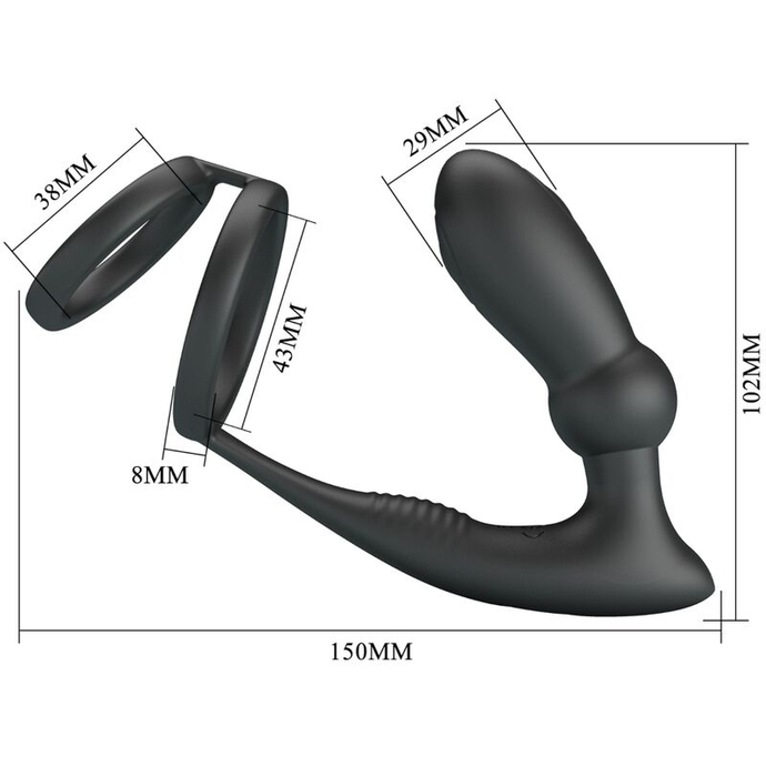PRETTY LOVE - EMONI PENIS RING + ANAL PLUG 12 VIBRATIONS BLACK