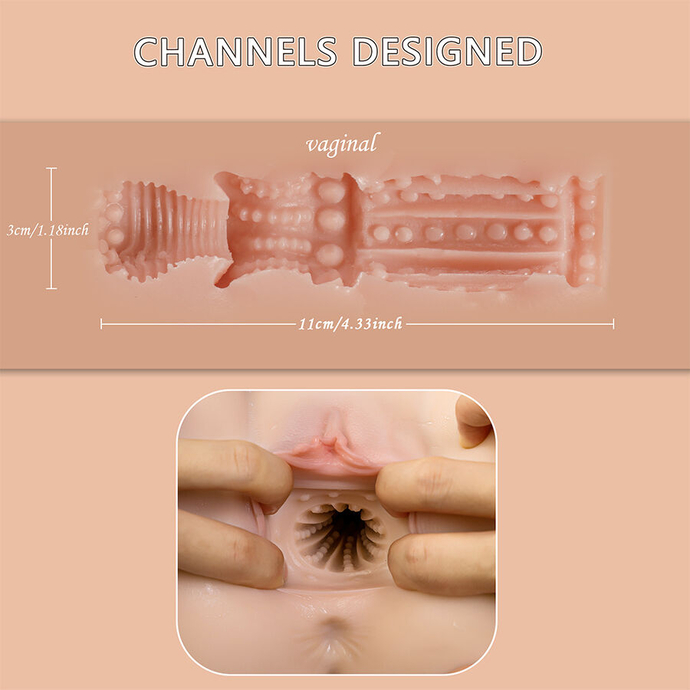 • Hyper-Realistic Design with Anatomical Details:  This masturbator has been accurately modeled to replicate the feel and appearance of a female pelvis. It features soft and stretchy synthetic skin, detailed vaginal lips and an internal texture designed to provide maximum stimulation.