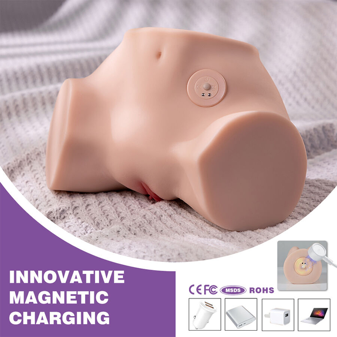- Hyper-Realistic Design with Anatomical Details: This masturbator has been accurately modeled to replicate the feel and appearance of a female pelvis. It features soft and stretchy synthetic skin, detailed vaginal lips, a realistic anal entrance, and internal texture designed to provide maximum stimulation.